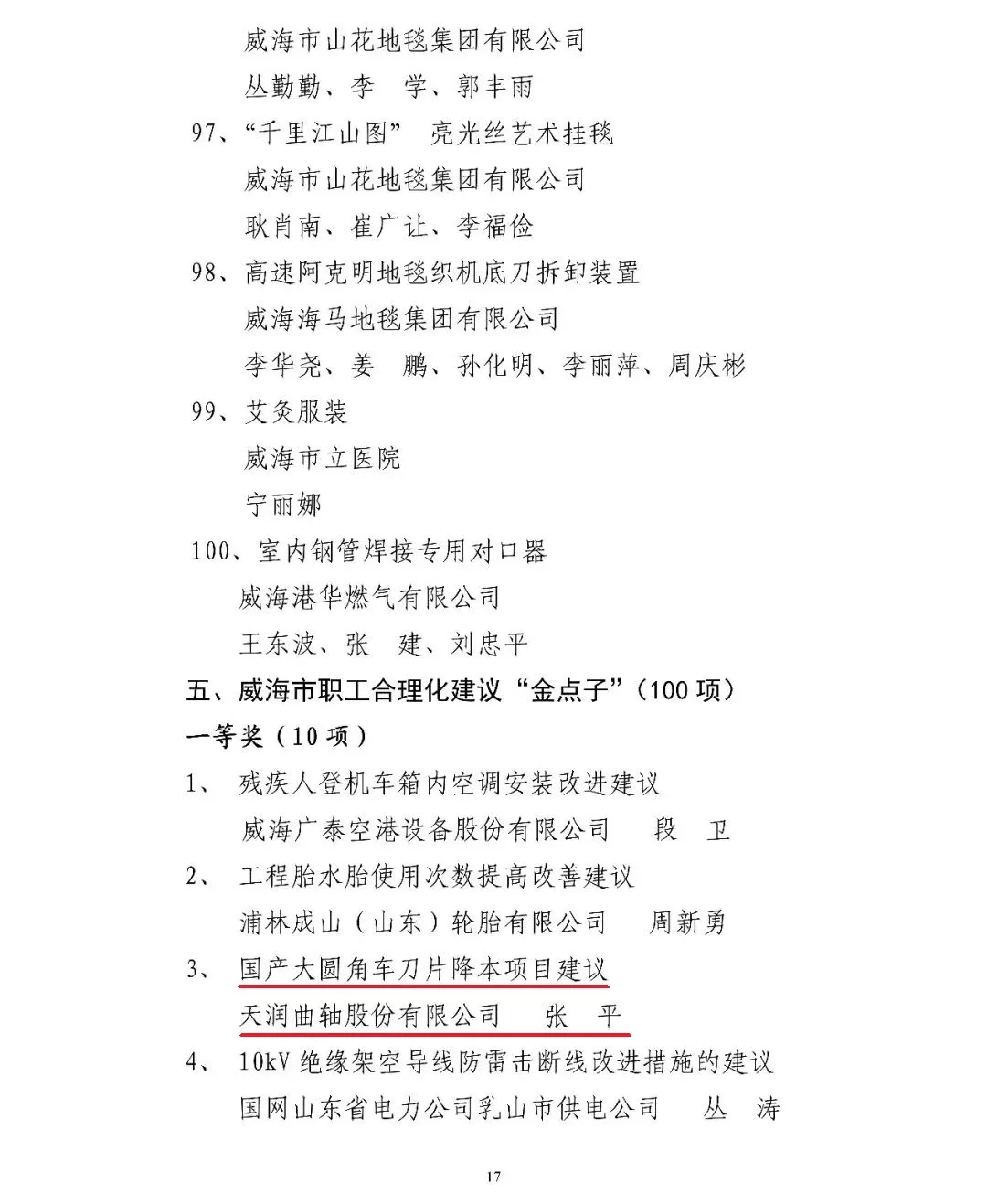 ÇúÖáÊÖÒÕ²¿ÕÅÆ½¡°¹ú²ú´óÔ²½Ç³µµ¶Æ¬½µ±¾ÏîÄ¿½¨Ò顱»ñ¡°Íþº£ÊÐÖ°¹¤ºÏÀí»¯½¨Òé¡®½ðµã×Ó¡¯¡±Ò»µÈ½±£»£»£»£»£»£»£»