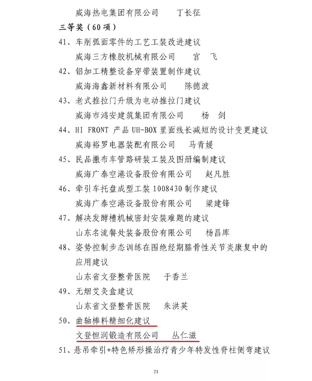ÎĵǺãÈóÖýÔìÓÐÏÞ¹«Ë¾´ÔÈÊ×Ì¡°ÇúÖá°ôÁÏϸÄ廯½¨Ò顱»ñÍþº£ÊÐÖ°¹¤ºÏÀí»¯½¨Òé¡®½ðµã×Ó¡¯¡±ÈýµÈ½±¡£¡£¡£¡£¡£¡£¡£¡£